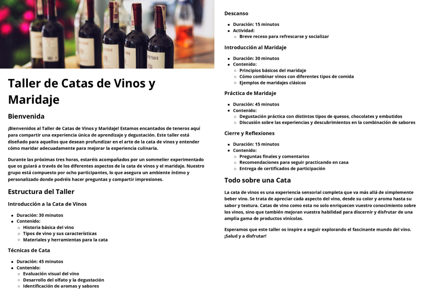 Este evento está diseñado tanto para aficionados como para aquellos que desean profundizar su conocimiento sobre el fascinante mundo del vino.